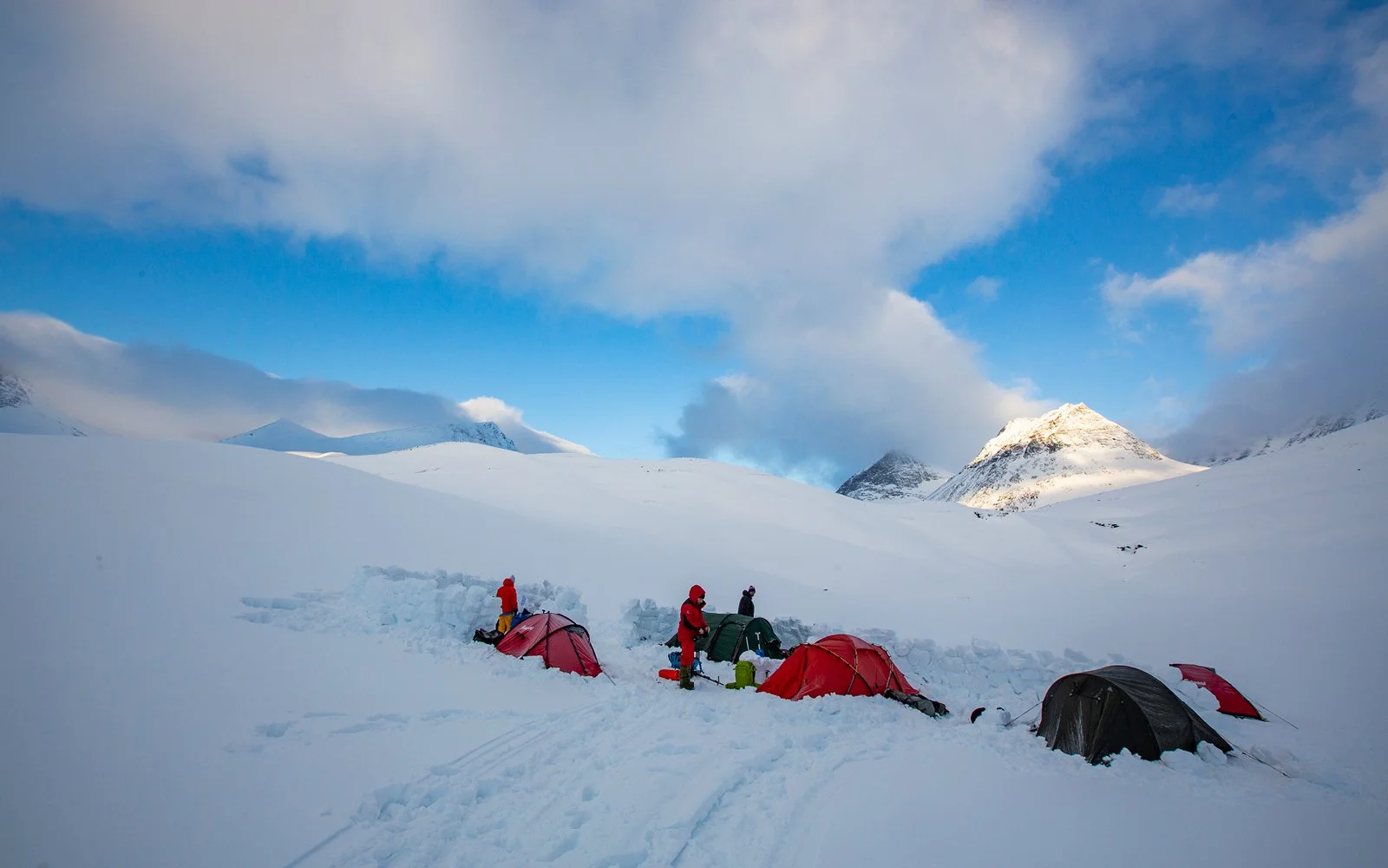 Toppturer på fjäll där få människor åkt skidor förut, fjärran från all civilisation. Bo bekvämt vid foten av de högsta massiven med rymliga sov-, toalett- och mattält. Garanterat äkta expeditionsliv och garanterat orörd snö.